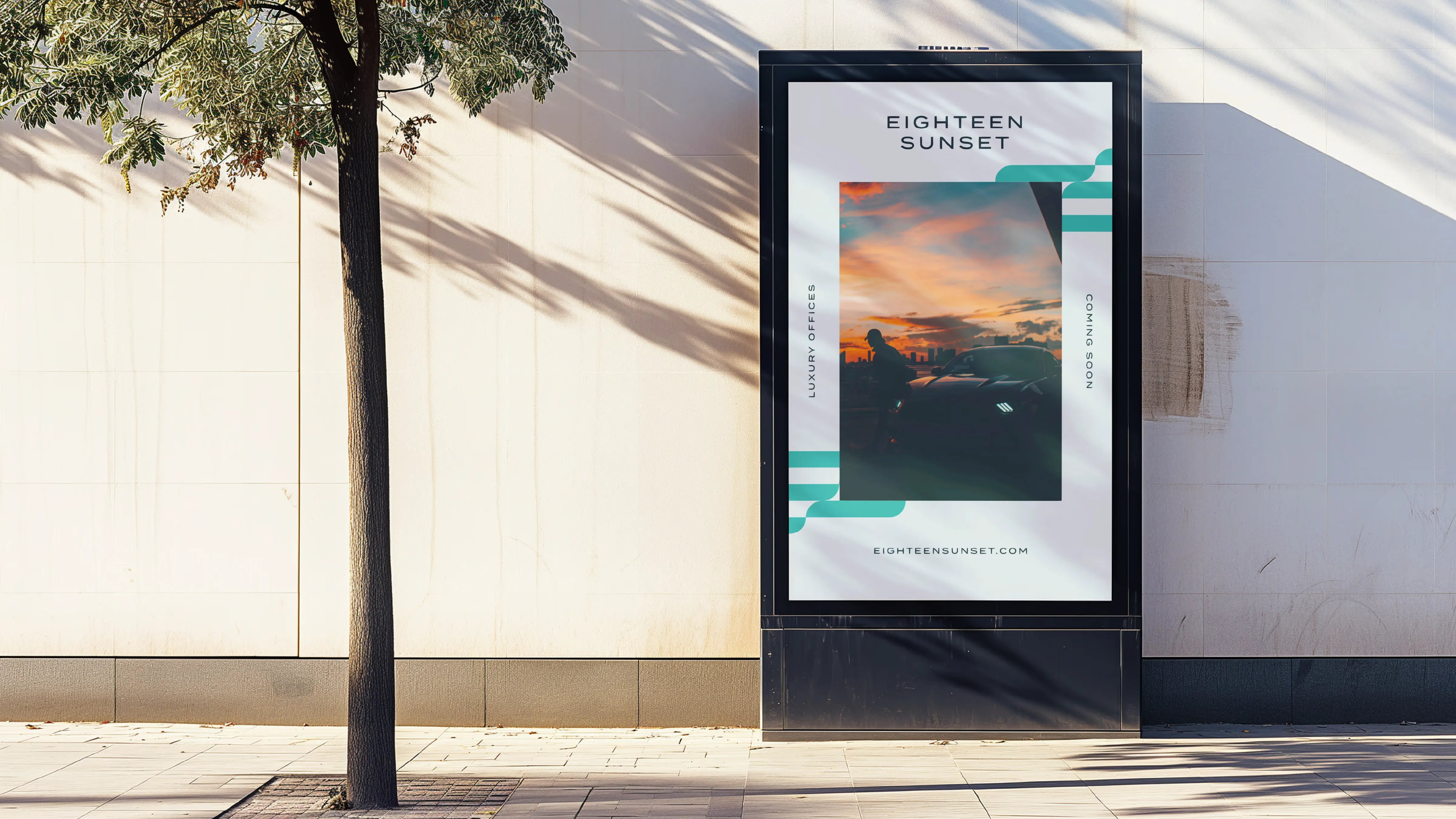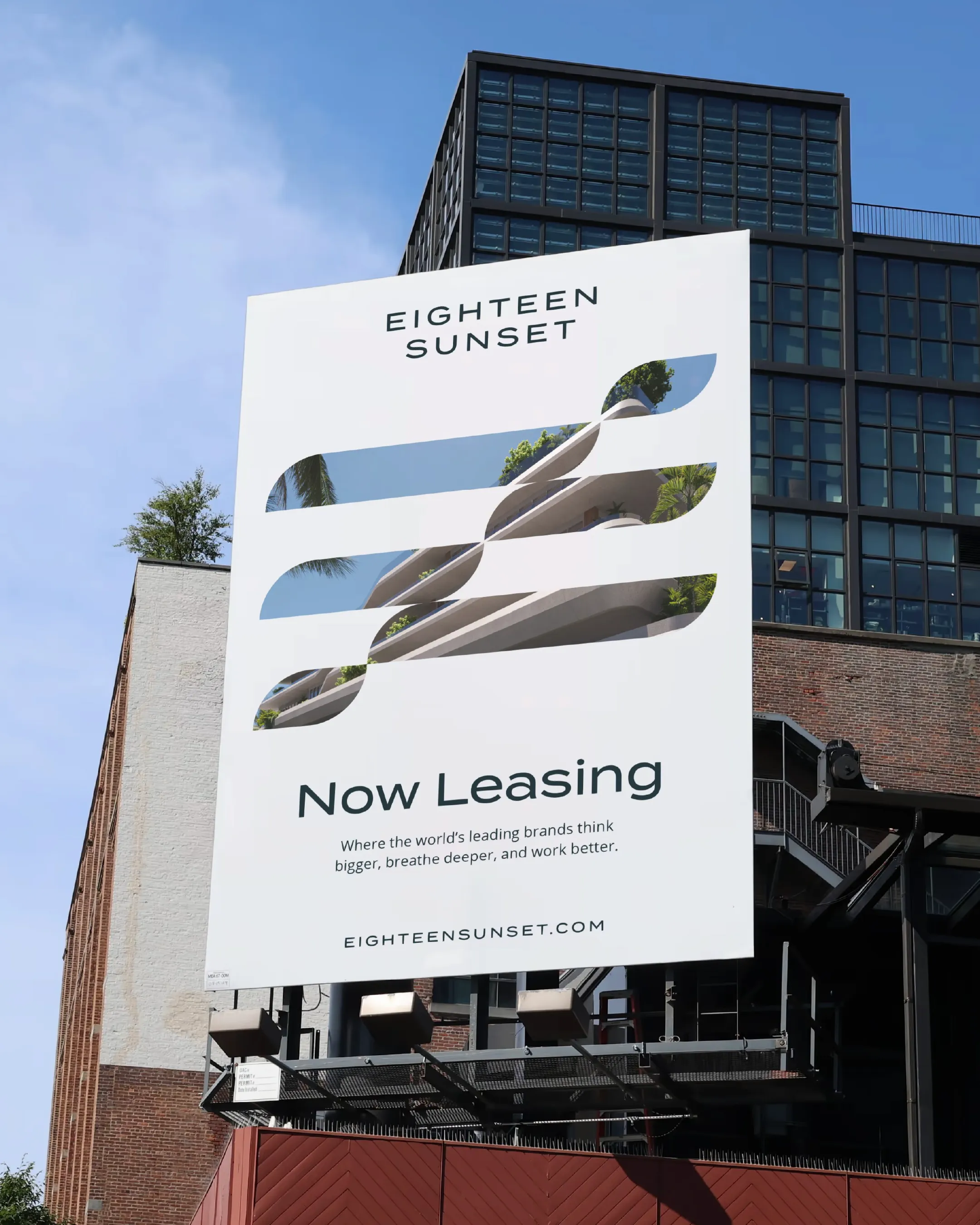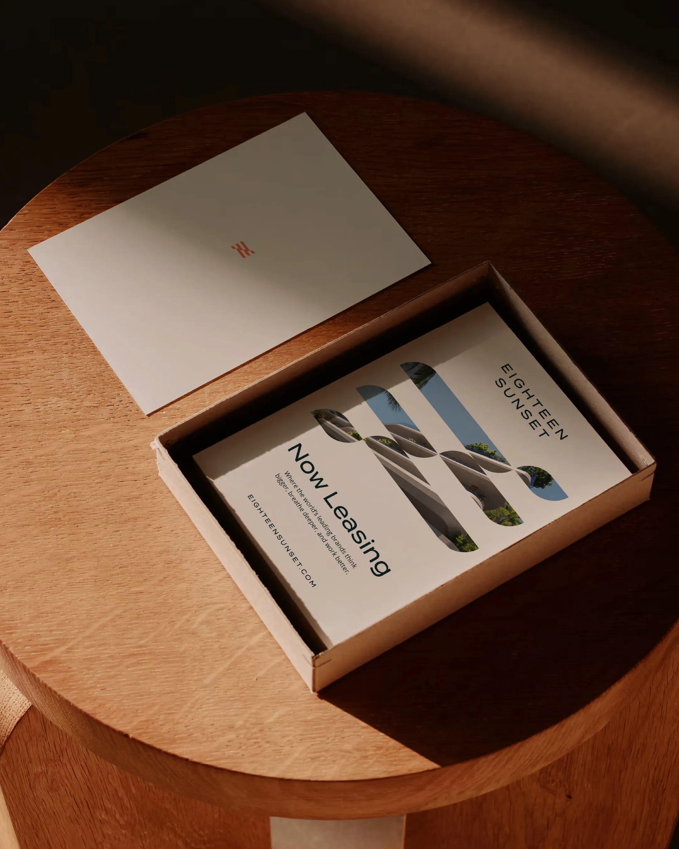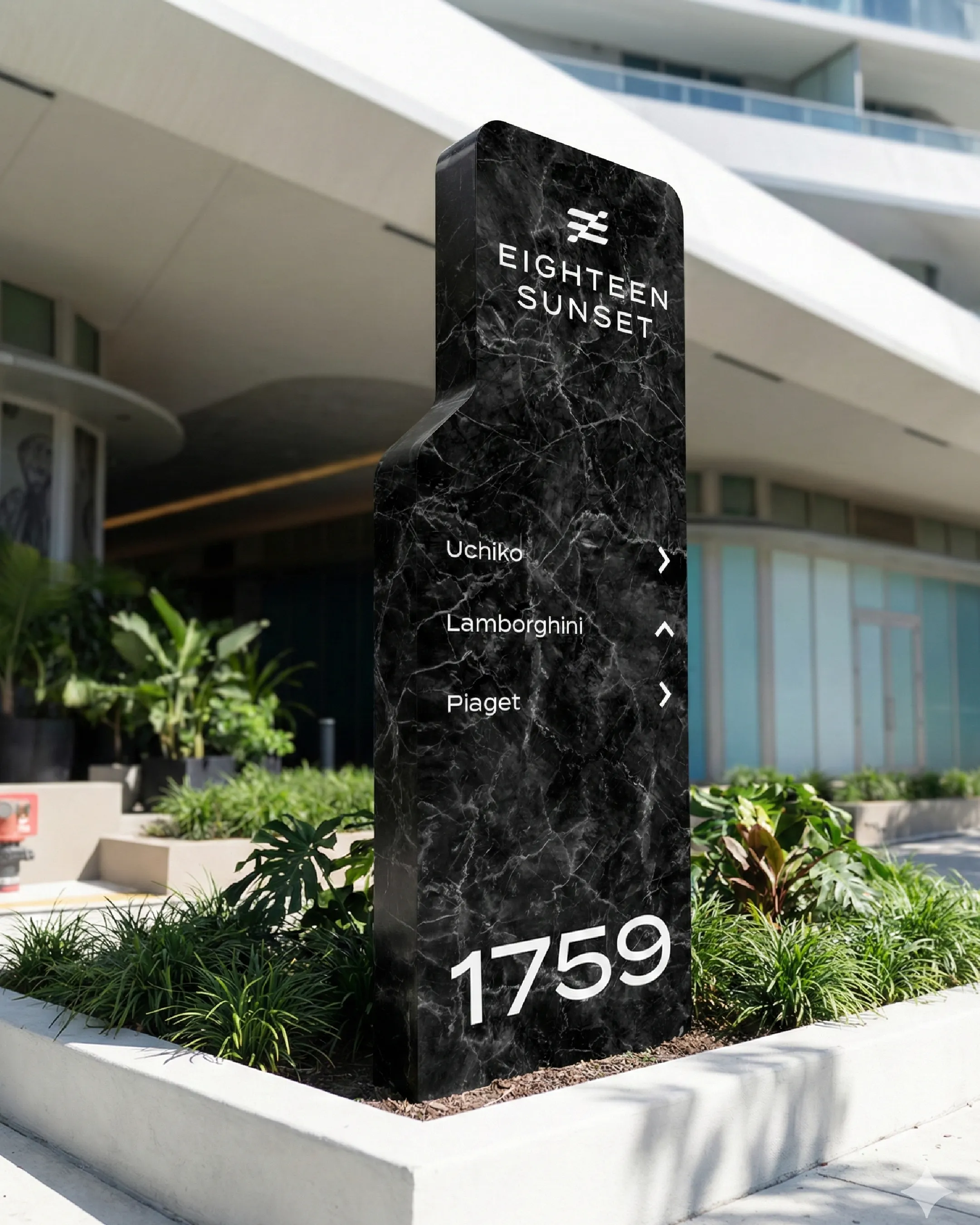 Visual identity exploration for Eighteen Sunset, a five-story mixed-use development in Miami Beach's Sunset Harbour Village. The project centered on crafting a refined brand system that balanced the building's architectural sophistication with its waterfront location, merging the structured lines of modern design with the fluid movement of the Intracoastal.