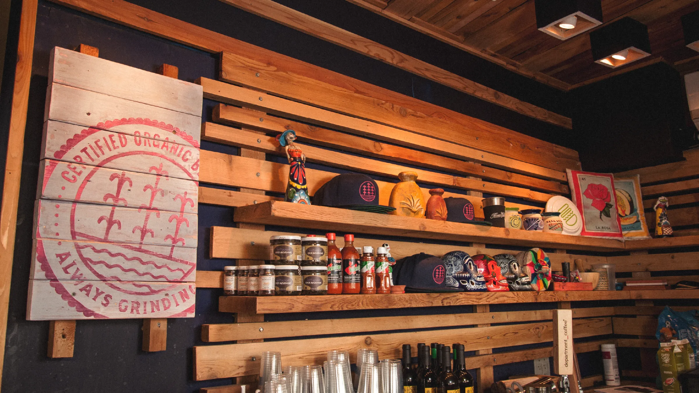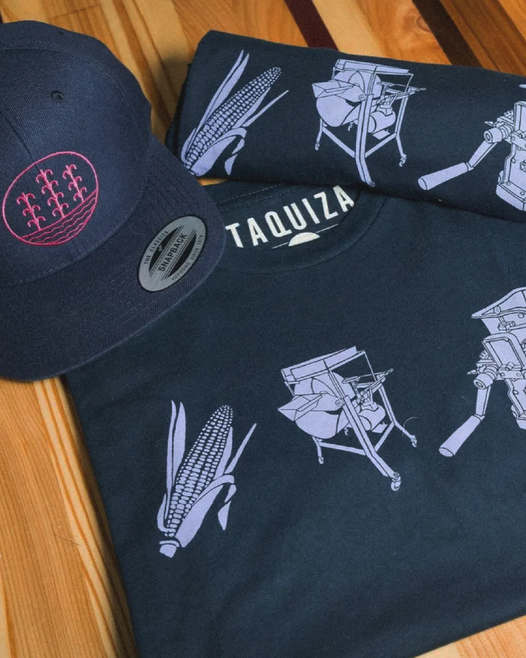 A refined identity system anchored by the tagline "Always Grinding," capturing both the literal masa-making process and the brand's dedication to craft. The blue corn icon became the visual centerpiece, supported by condensed typography, a distinctive masa blue and magenta palette, and hand-drawn supporting graphics (grinders, corn, tortilla presses). We created secondary Southwestern-inspired badges and type treatments that added flexibility for merchandise and collateral. The system worked across signage, packaging, apparel, and interior touchpoints, giving Taquiza a complete brand presence that felt intentional, authentic, and scalable.